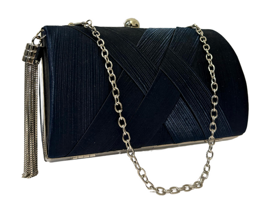 Women's Satin Tassel Clutch Bag Party Prom Evening Purse Handbag Chain