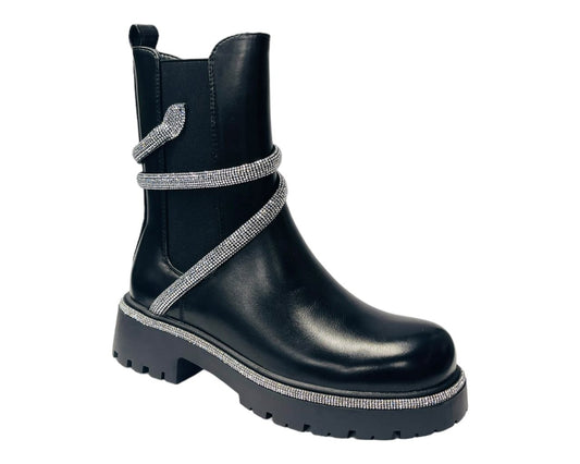 Women's Chunky Sole Faux Leather Zip Diamante Chelsea Boots