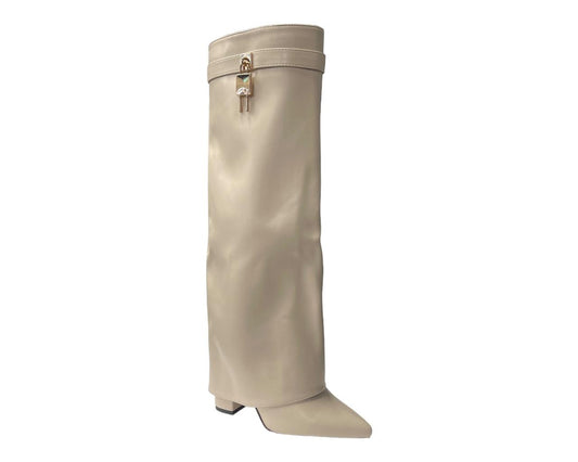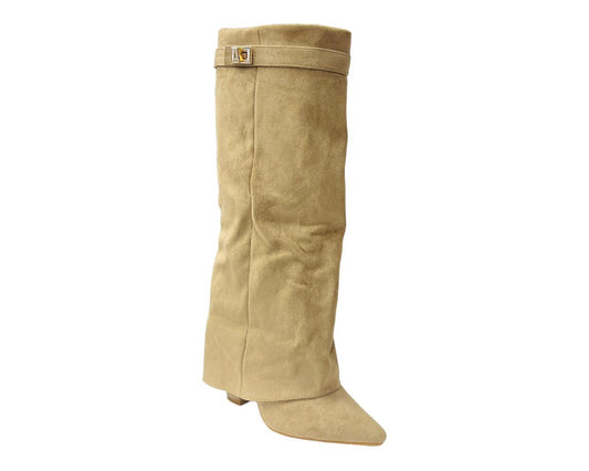 Women's Knee High Fold Over Pointed Heel Boots Winter Shoes