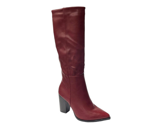 Pointed Toe Faux Leather Stiletto Heel Knee High Boots