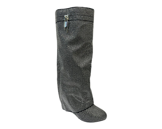Women's Winter All Over Rhinestone Knee High Zip Boots wedge Shoes