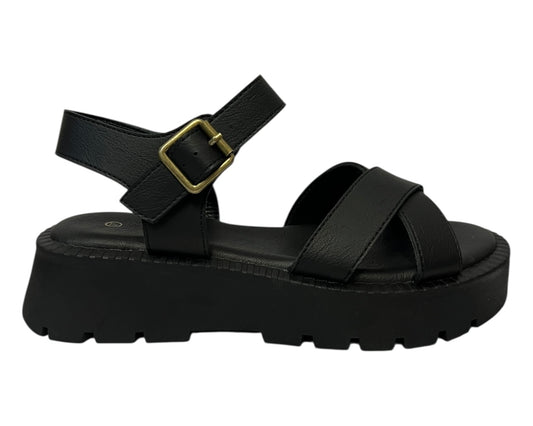 Women's Faux Leather Double Strap Chunky Sole Sandals