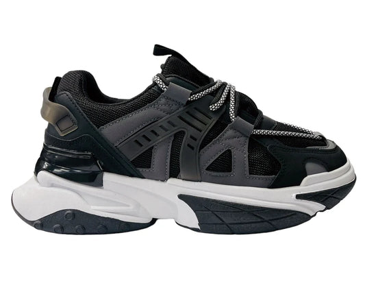 Men's Casual 9028A Lace Up Trainers Black/Grey