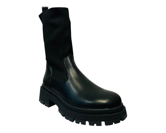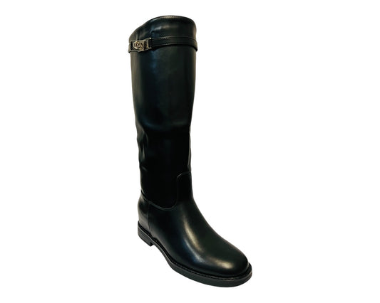 Women's JM 22-0869 Faux Leather Knee High Stretch Boots Black