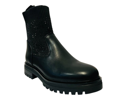 Women's Rhinestone Faux Leather Stretch Ankle Boots