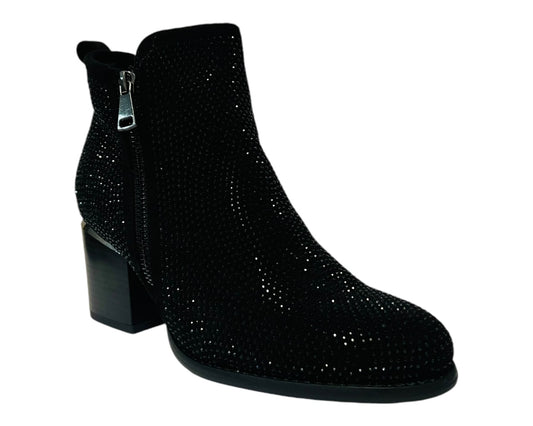 Women's Block Heel Rhinestone Zip Ankle Boots Black