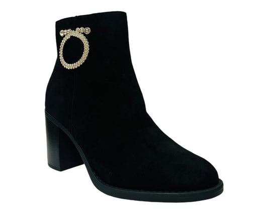Women's Block Heels Zip Diamante Ankle Boots Black
