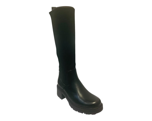 Women's 6301 Faux Leather Knee High Stretch Zip Boots Black