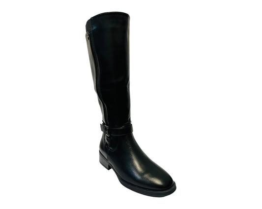 Women's 1610 Faux Leather Knee High Zip Boots Black