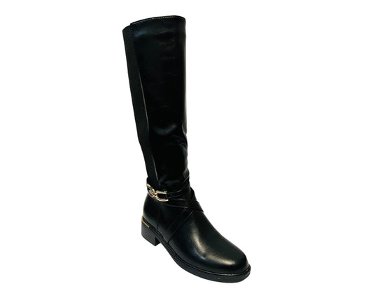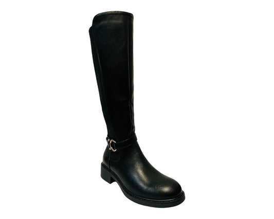 Women's CHC320 Faux Leather Knee High Stretch Zip Boots Black
