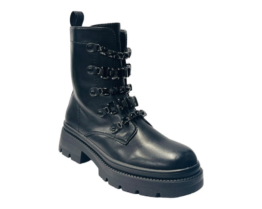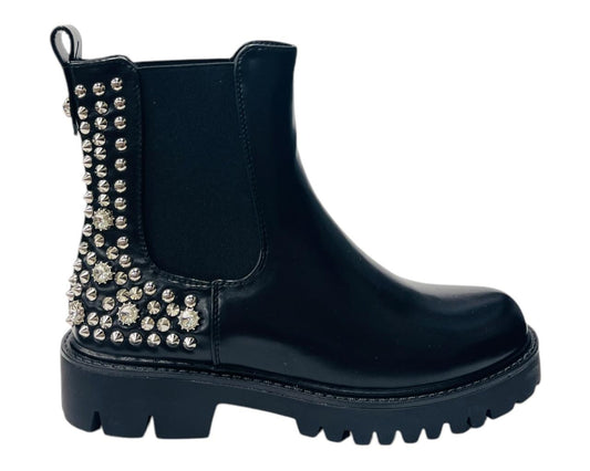 Women's Chunky Sole Faux Leather Zip Diamante Chelsea Boots