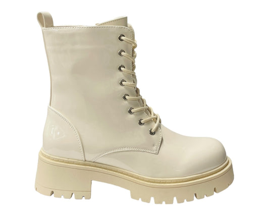 Women's Chunky Sole Faux Leather Zip Diamante Chelsea Boots Black Patent