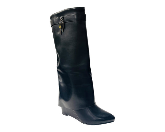 Women's Knee High Fold Over Pointed Heel Boots Winter Shoes