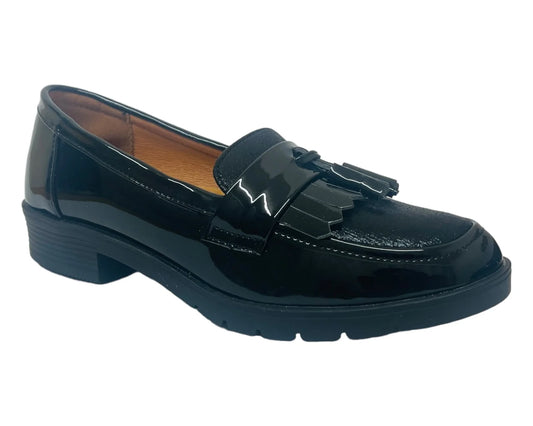 Faux Patent Leather Tassel Slip On Shoes