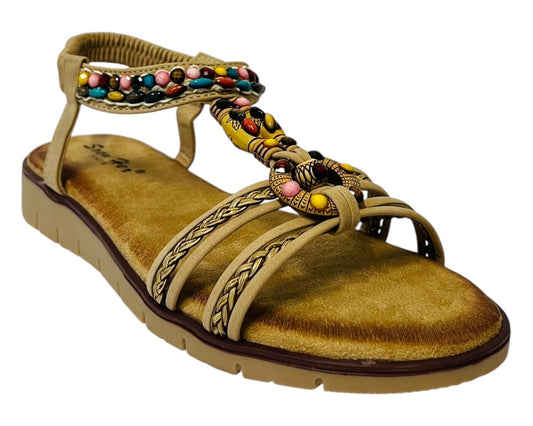 Women's Ankle Strap Flat Beaded Strappy Sandal
