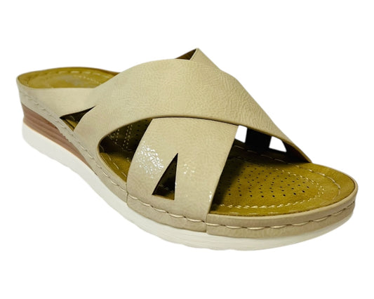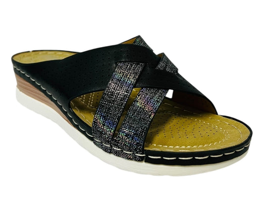 Women's Lightweight Cross Strap Mules Wedge Slider