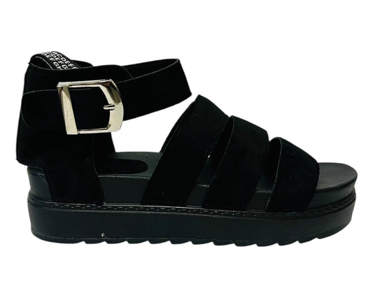 Women's Faux Leather Suede Chunky Sole Gladiator Sandals Black