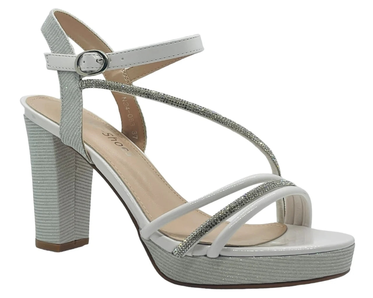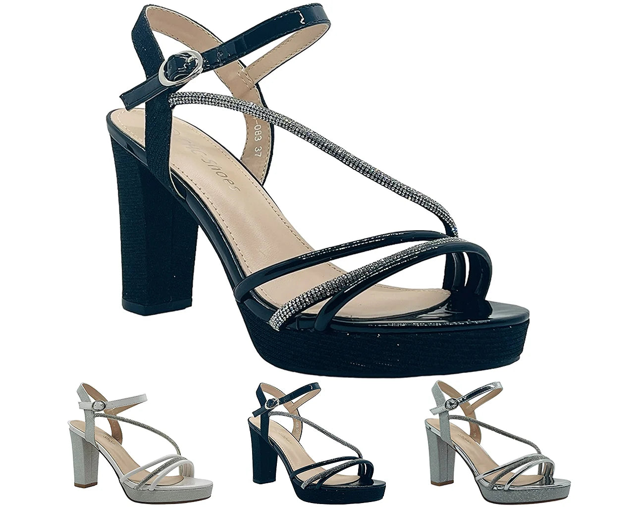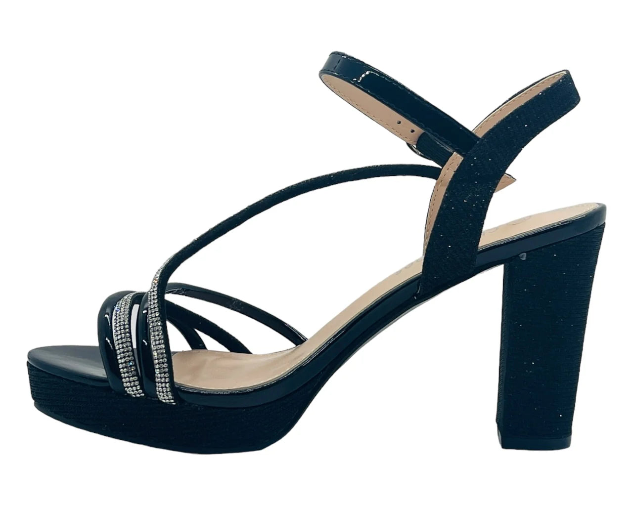 Ankle Strap Diamante Block Heel Shoes