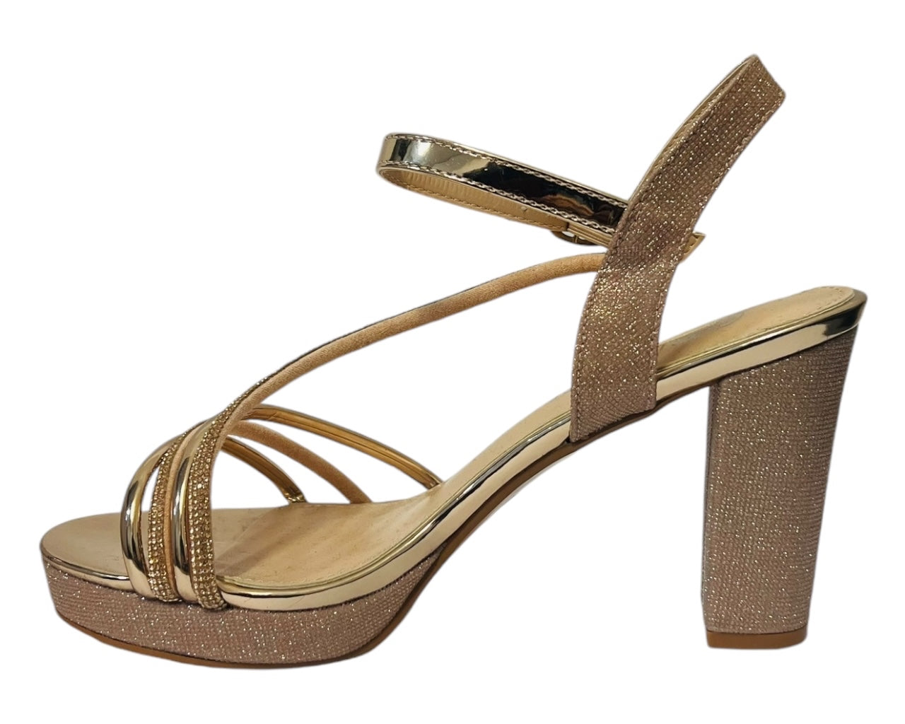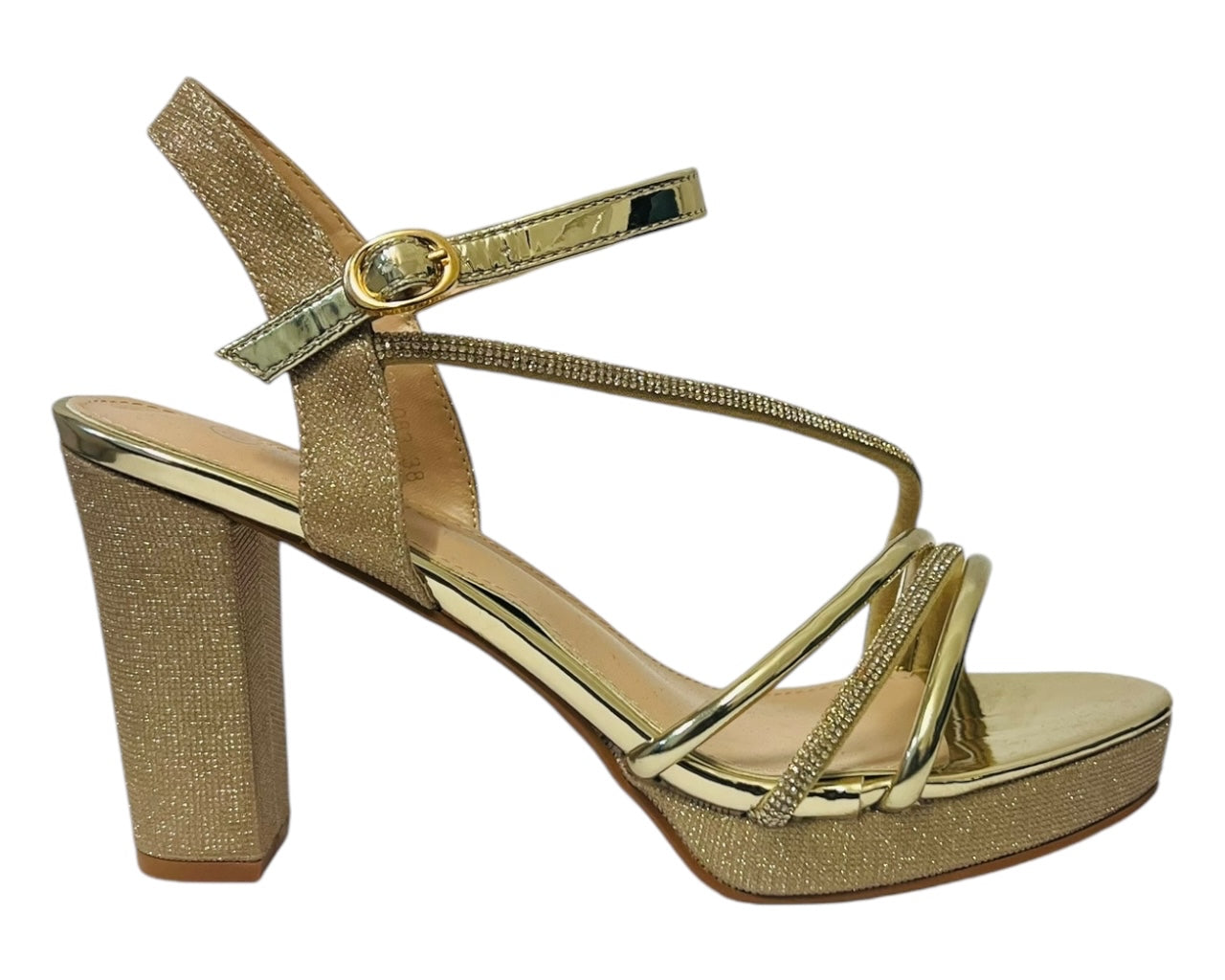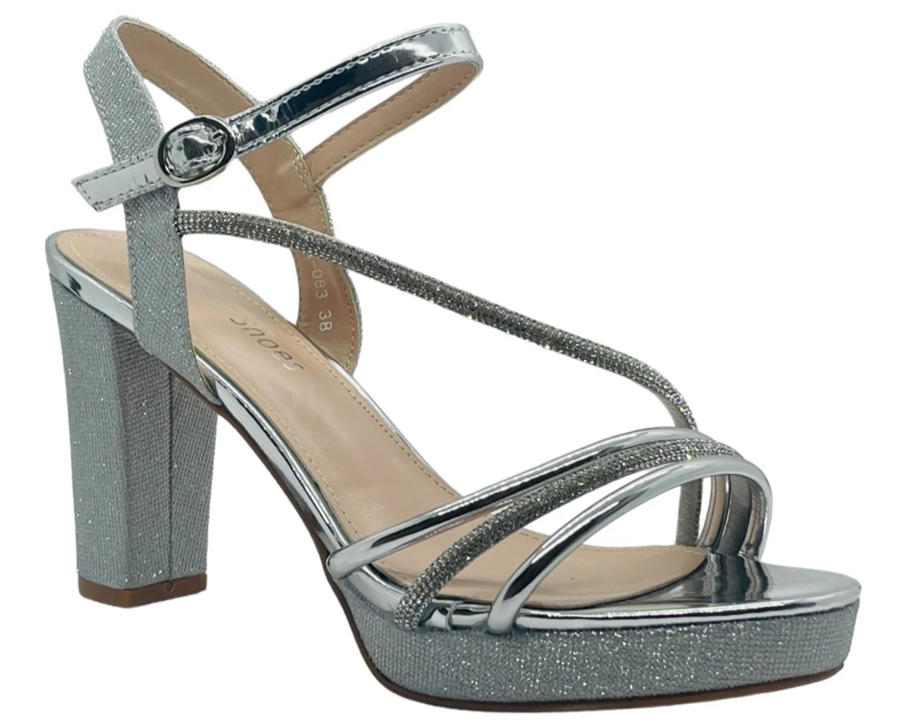 These glitter heels are the perfect party to make a statement and dress up your favourite outfit. Faux leather upper & padded insole offer both comfort and durability, while the block heel gives you a little extra height. Ankle strap with buckle closer, Heel height about 10cm.