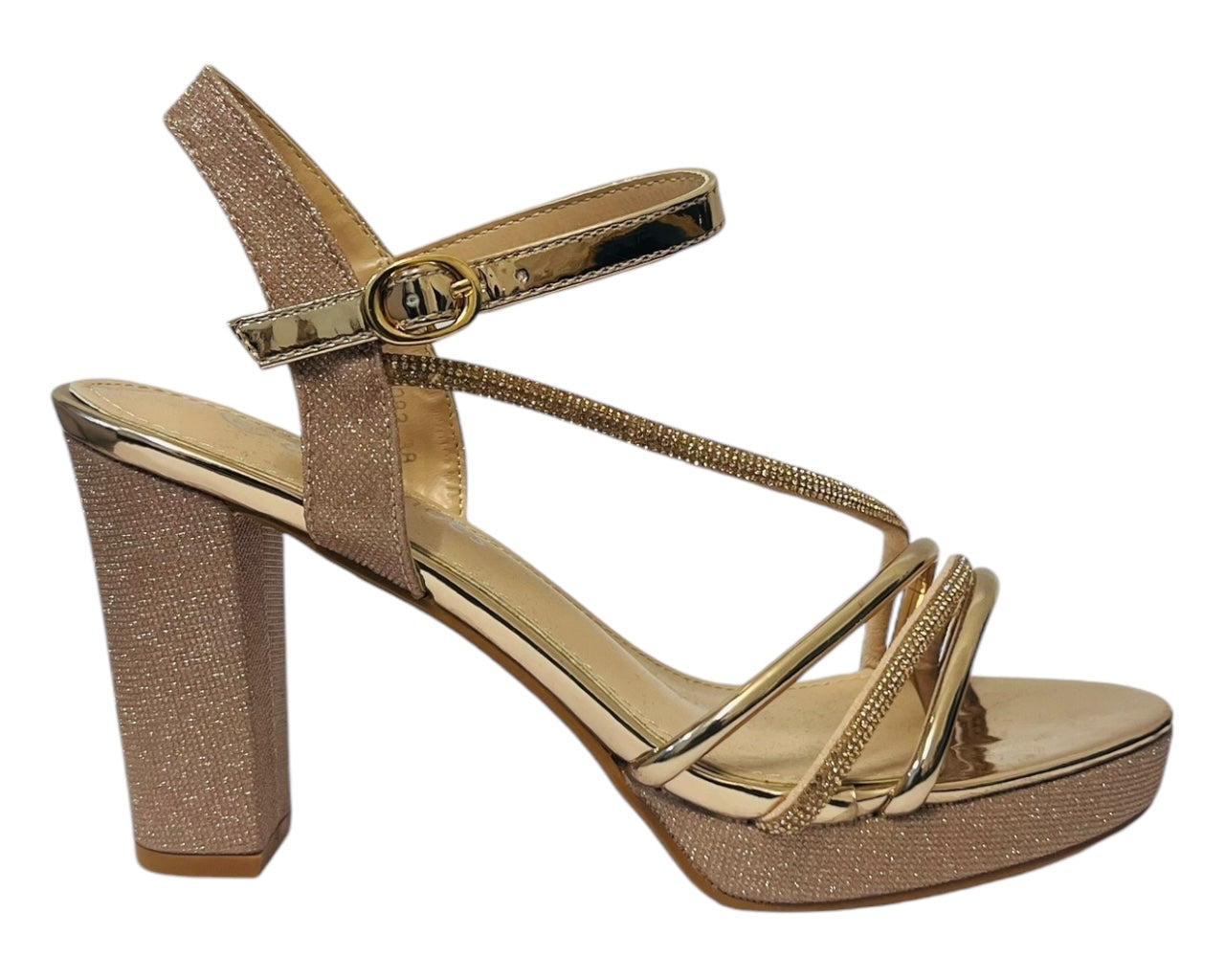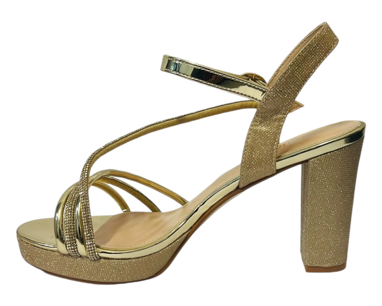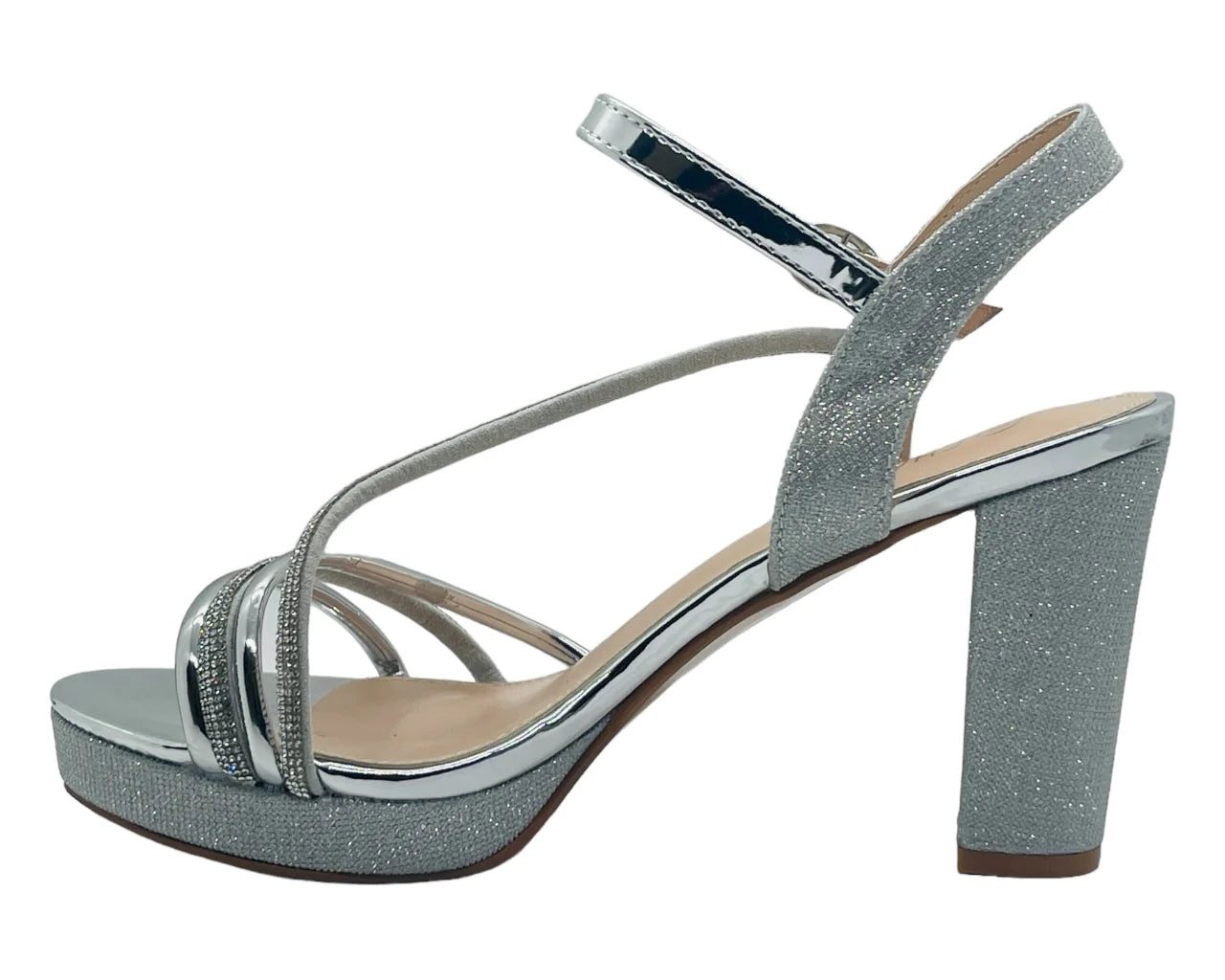 These glitter heels are the perfect party to make a statement and dress up your favourite outfit. Faux leather upper & padded insole offer both comfort and durability, while the block heel gives you a little extra height. Ankle strap with buckle closer, Heel height about 10cm.