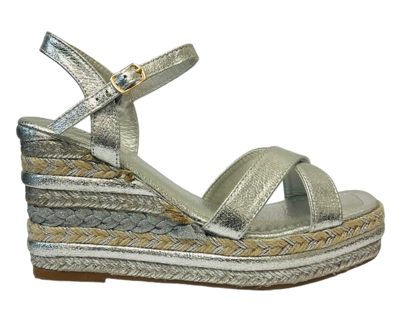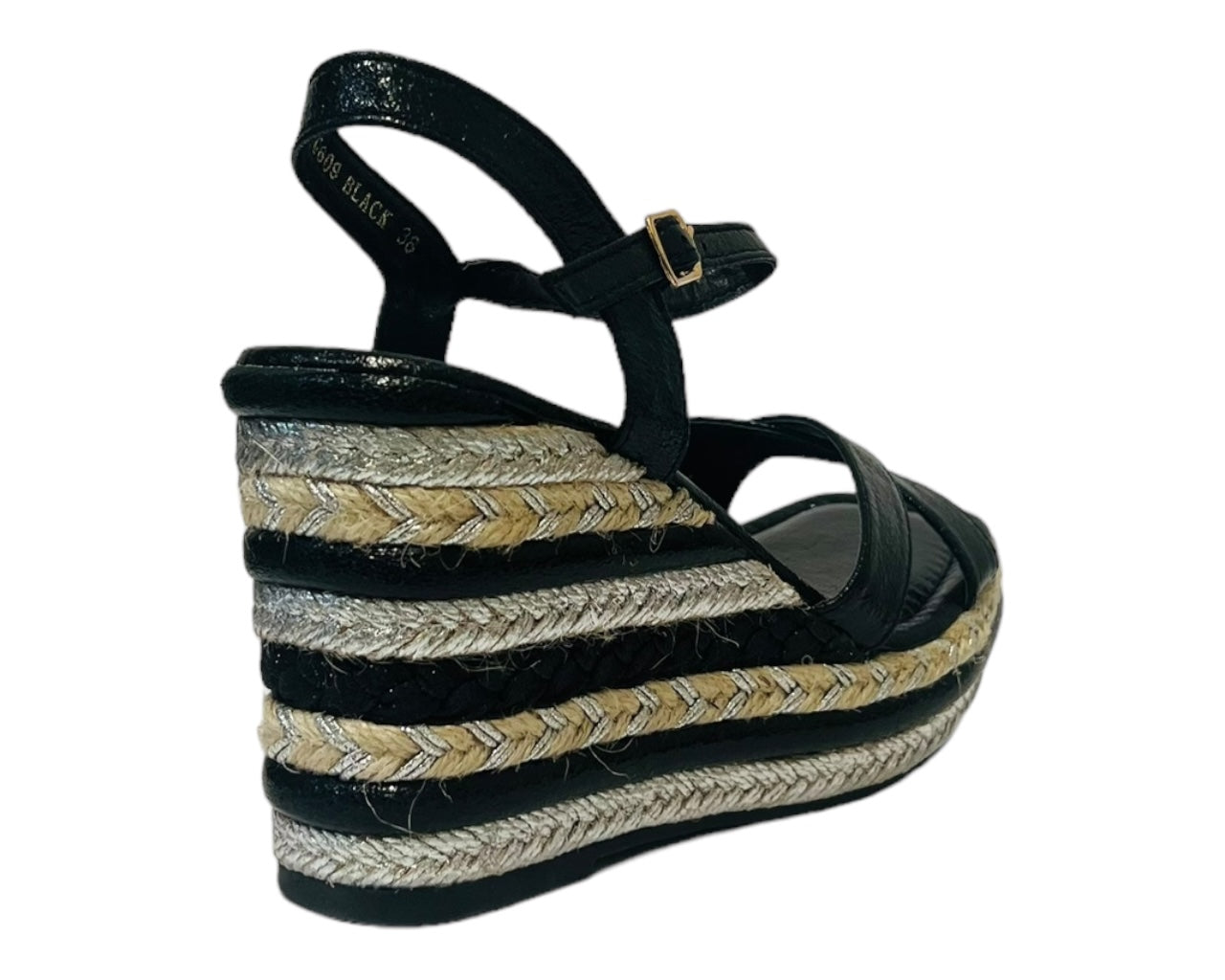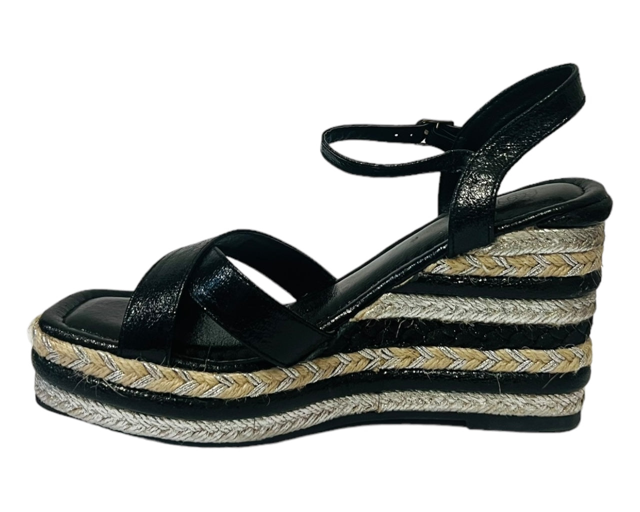 Ankle Strap Espadrilles Wedge Platform Sandals Black/Silver