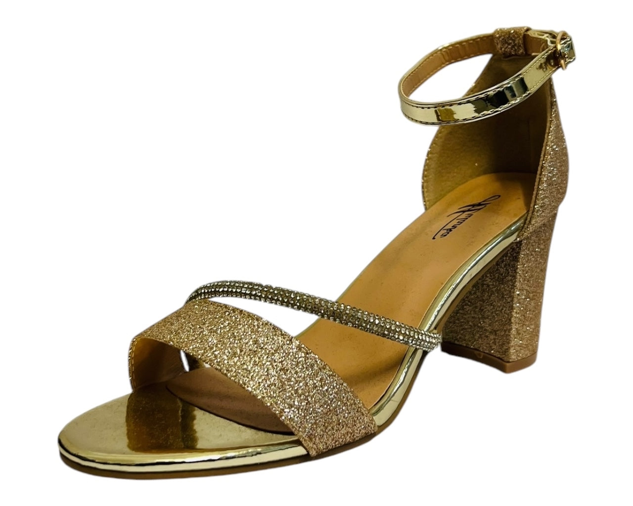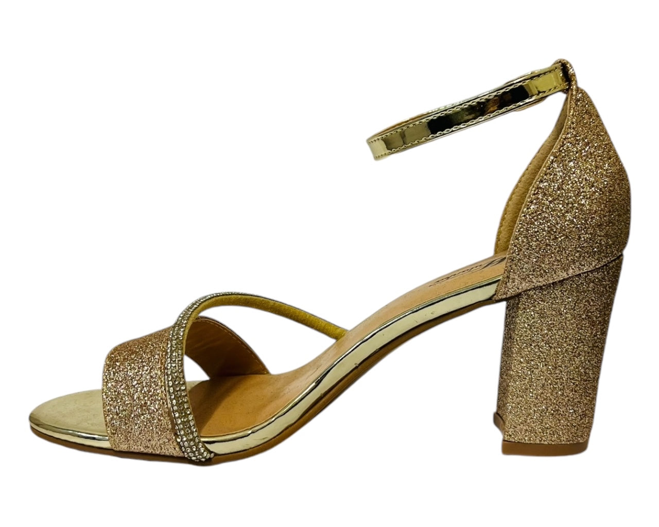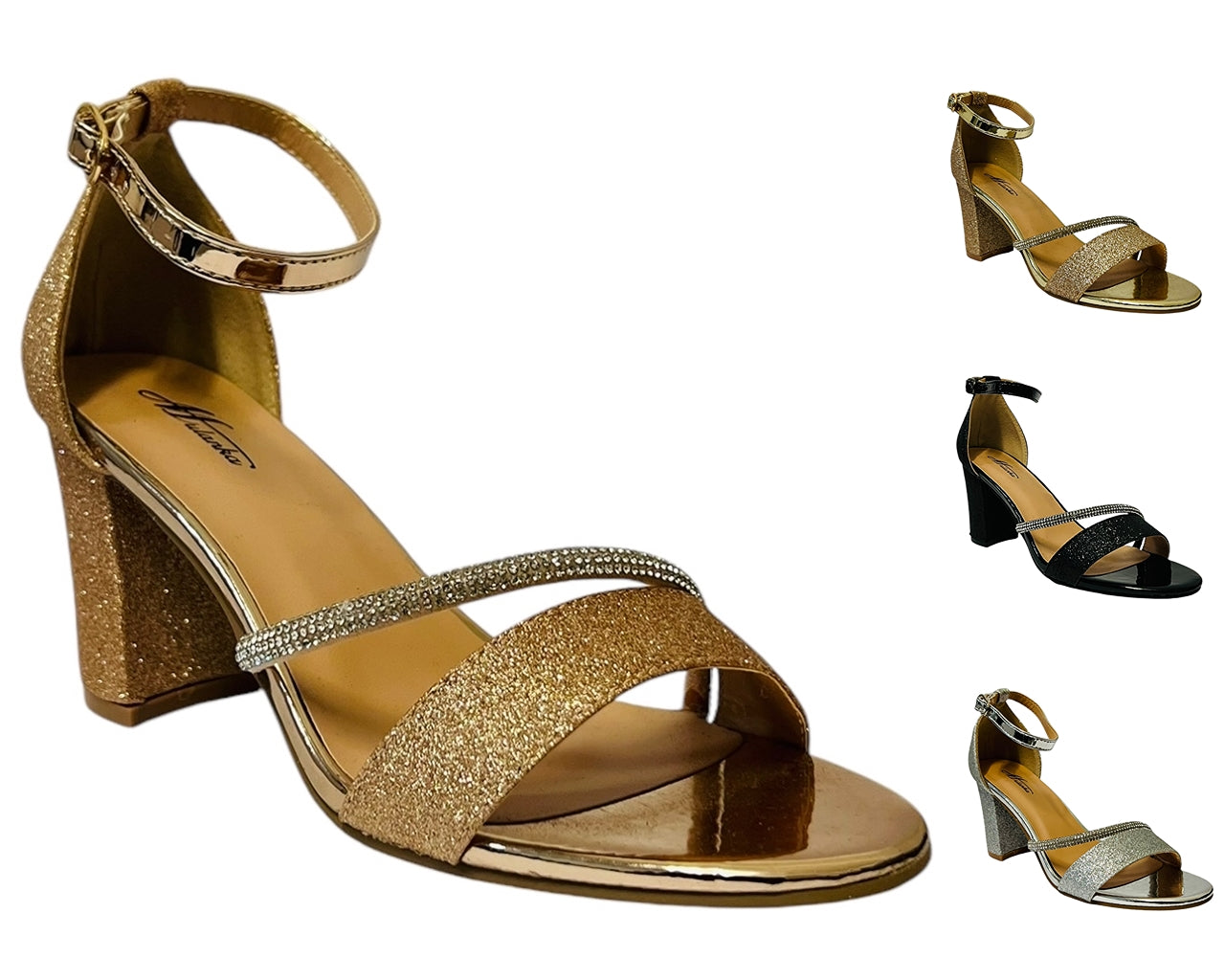 Mulanka Ankle Strap Glitter Block Heel party Shoes