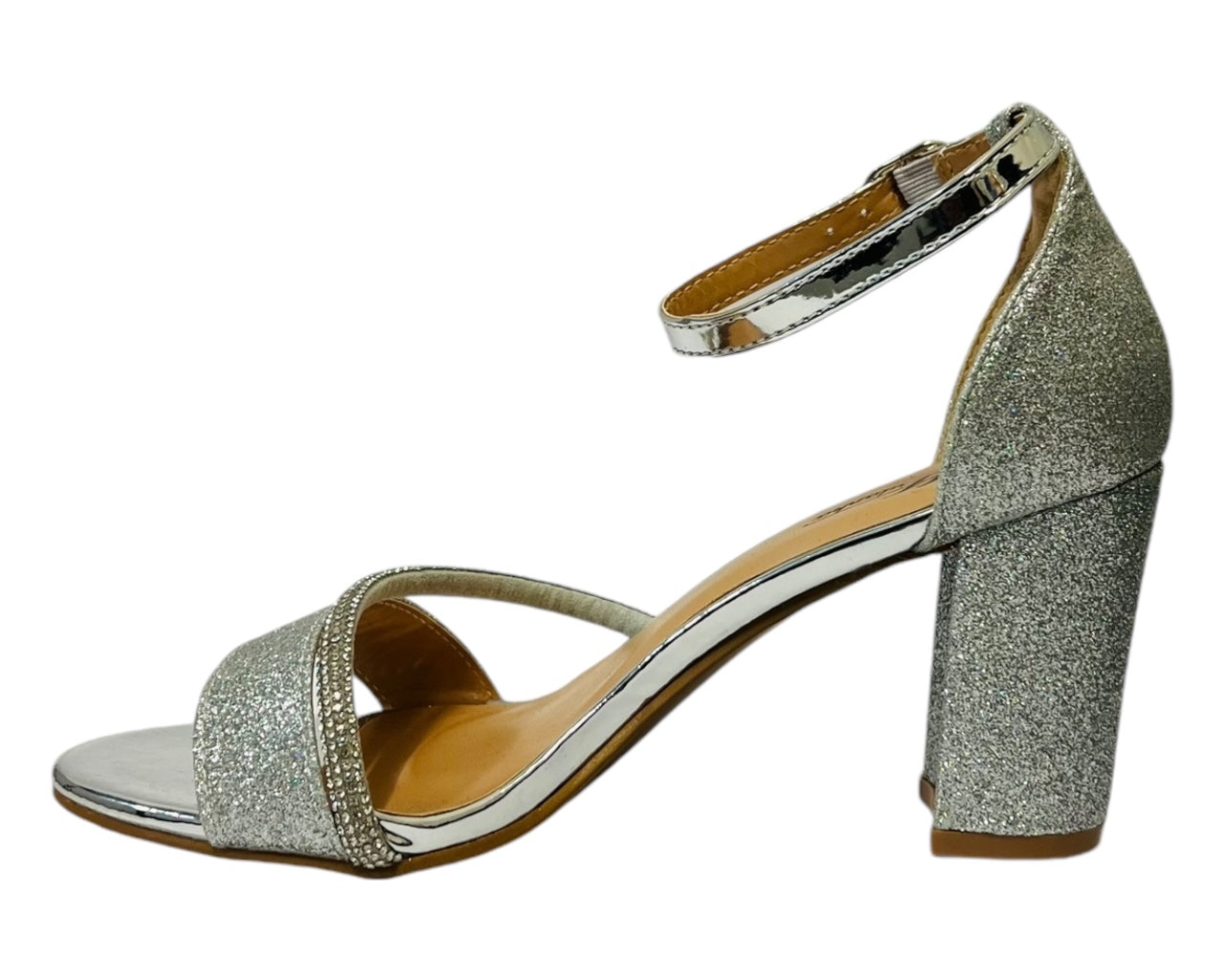 These glitter heels are the perfect party to make a statement and dress up your favourite outfit. Faux leather upper & padded insole offer both comfort and durability, while the block heel gives you a little extra height. Ankle strap with buckle closer, Heel height about 8cm.