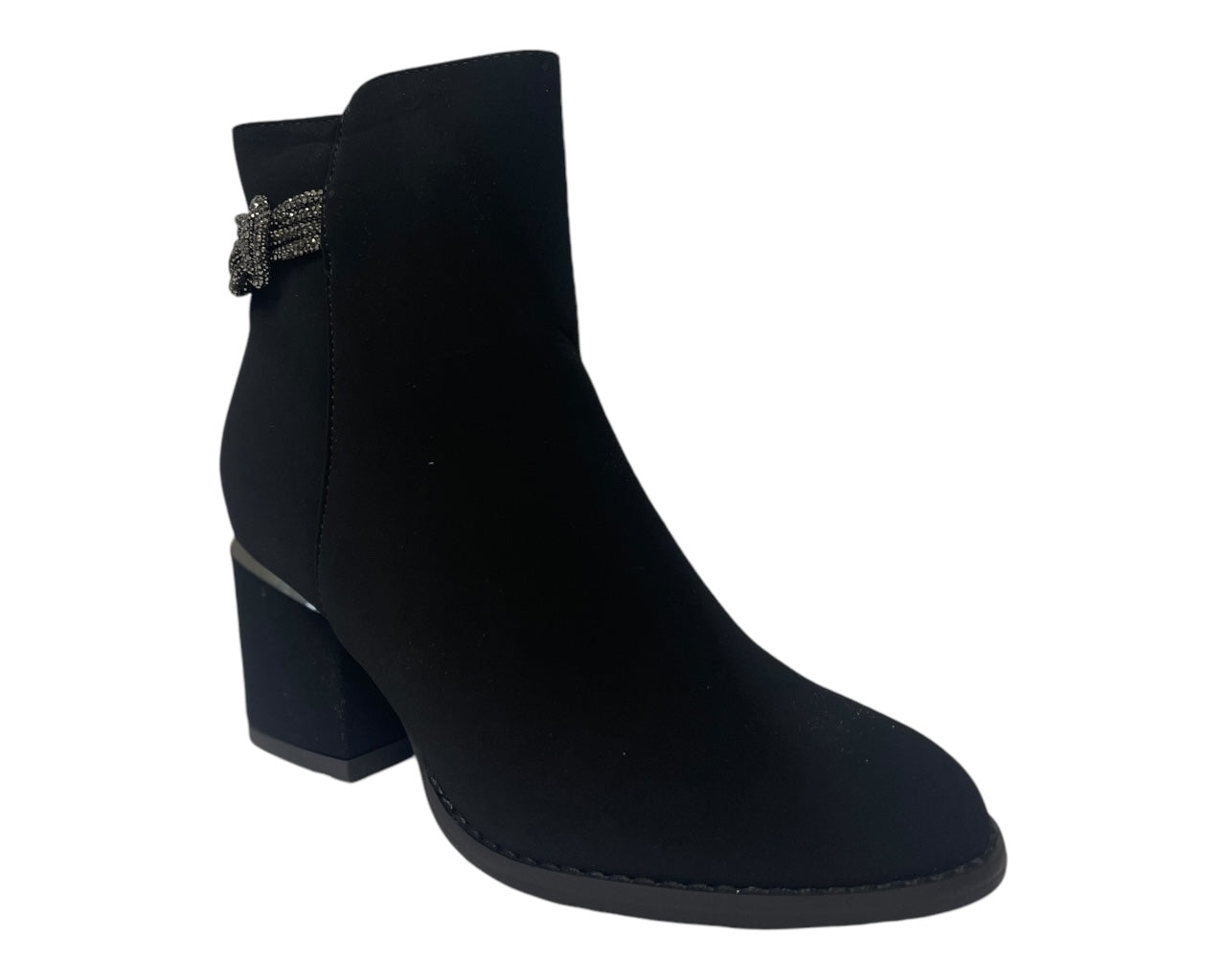 Block Heel Diamante Details Ankle Boots