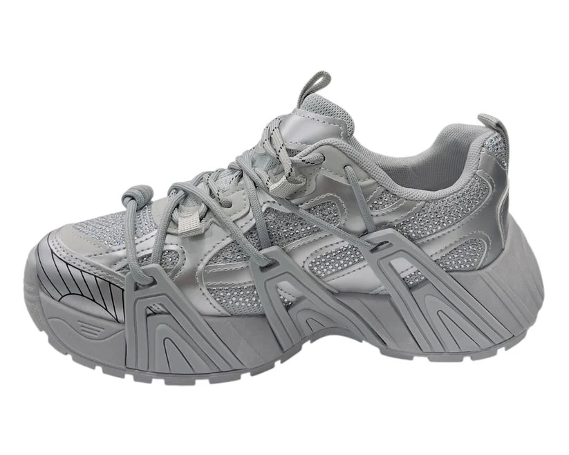 Chunky Sole Rhinestone Lace Up Sports Trainers