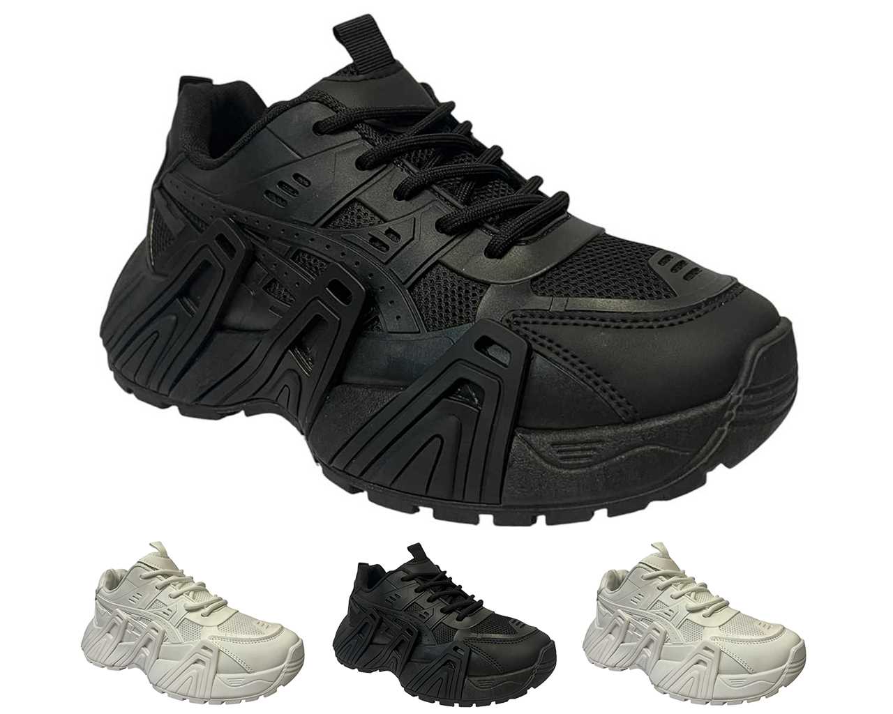 These Chunky Sole Lace Up Sports Trainers combine modern style with functional support. Featuring a robust, textured sole, they provide enhanced grip and stability, ideal for active use. The double lace-up design ensures a secure, customizable fit, improving comfort during movement. Durable construction supports everyday wear, making these trainers a reliable choice for both casual and athletic activities.