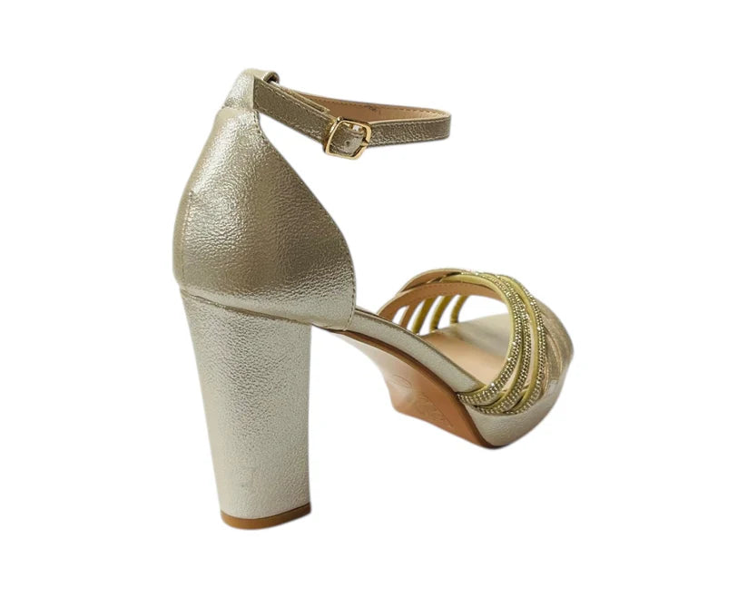 Diamante Block Heel Glitter Crossover Strap Shoes