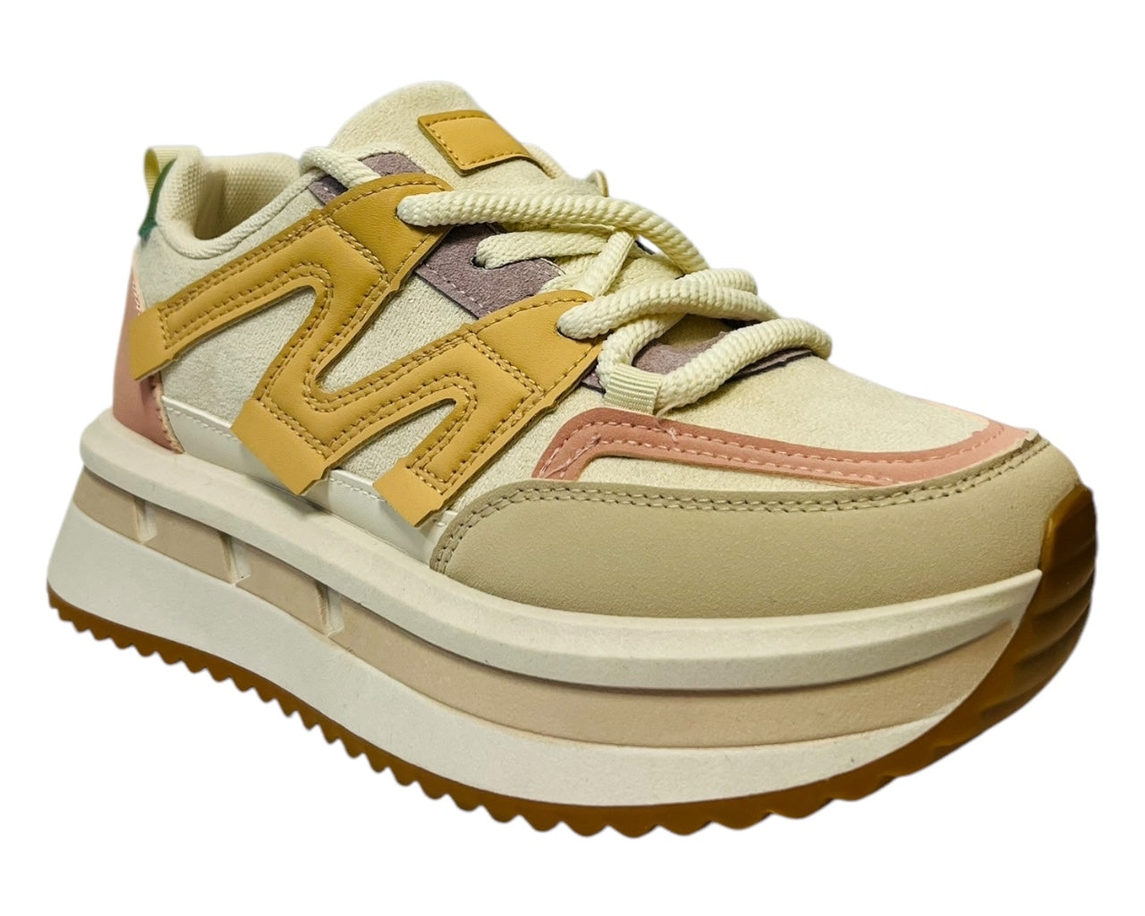 Elevate your style and comfort with our Womens Faux Leather Lace Up Platform Trainers. Crafted with a cushioned insole and rubber outsole, these trainers offer all-day comfort and traction for any occasion. The faux leather upper and lace-up design add versatility to any outfit. Make a statement with every step.