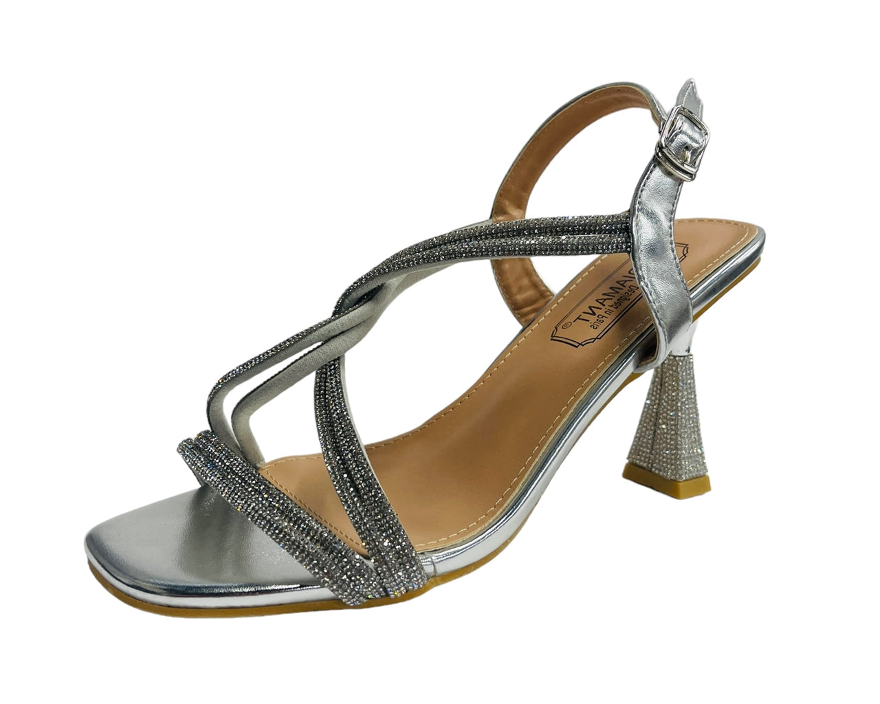 Women's Crossover Diamante Strappy Spool Heel Shoes