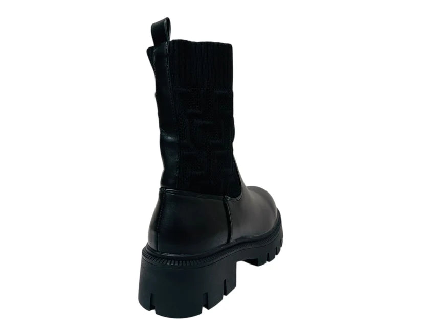 These ankle boots showcase expert craftsmanship with their distinctive combination of faux leather panelling and textured knit construction. The robust chunky sole delivers superior traction and longevity, whilst maintaining a modern silhouette that complements diverse styling options. The knit elements provide gentle stretch and breathability, adapting to your foot's natural contours for all-day comfort. Reinforced at the ankle for structural support, these boots transition seamlessly from casual daywear to evening occasions. A refined choice for those seeking durability without compromising on contemporary design aesthetics.