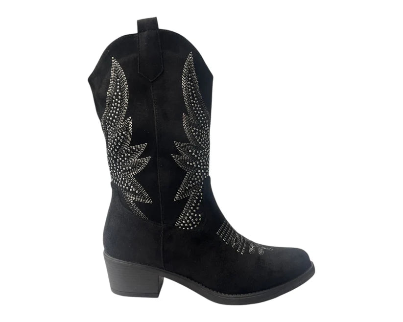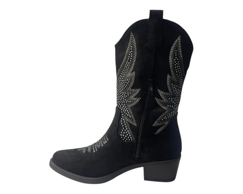 Embrace classic Western style with these ankle-high cowboy boots. Featuring a signature pointed toe, detailed stitching, and stud accents, they capture the timeless spirit of the Wild West.