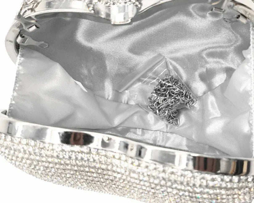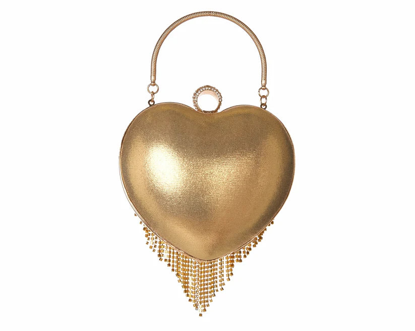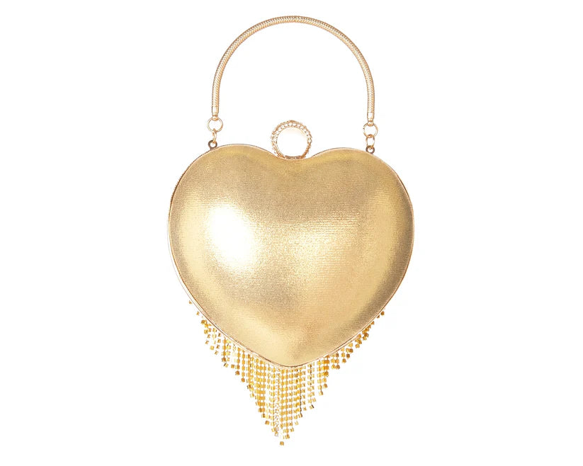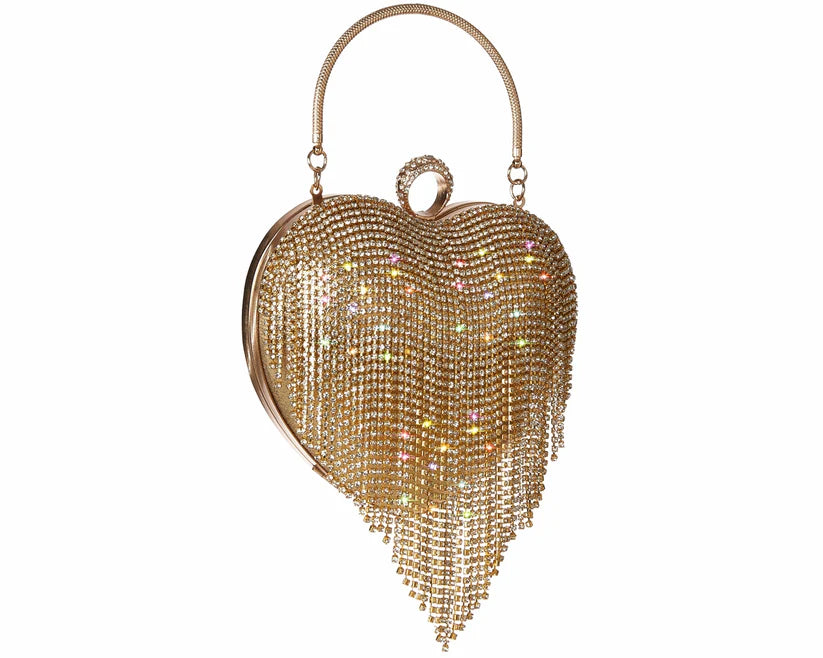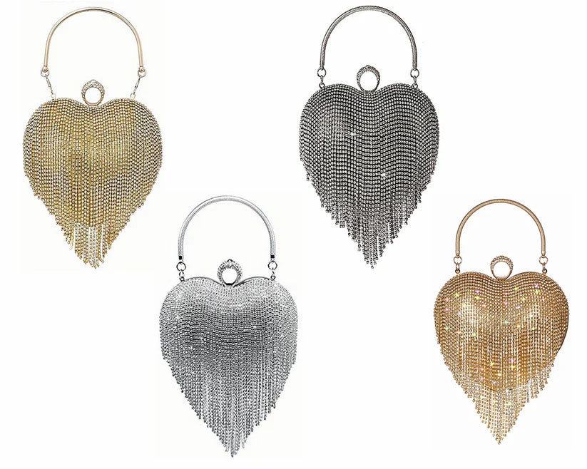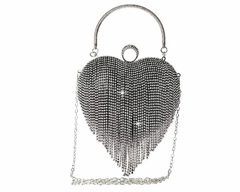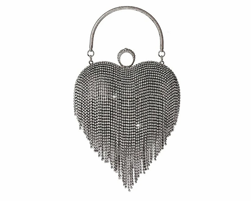 Women's Rhinestone Fringe Heart Clutch Bag