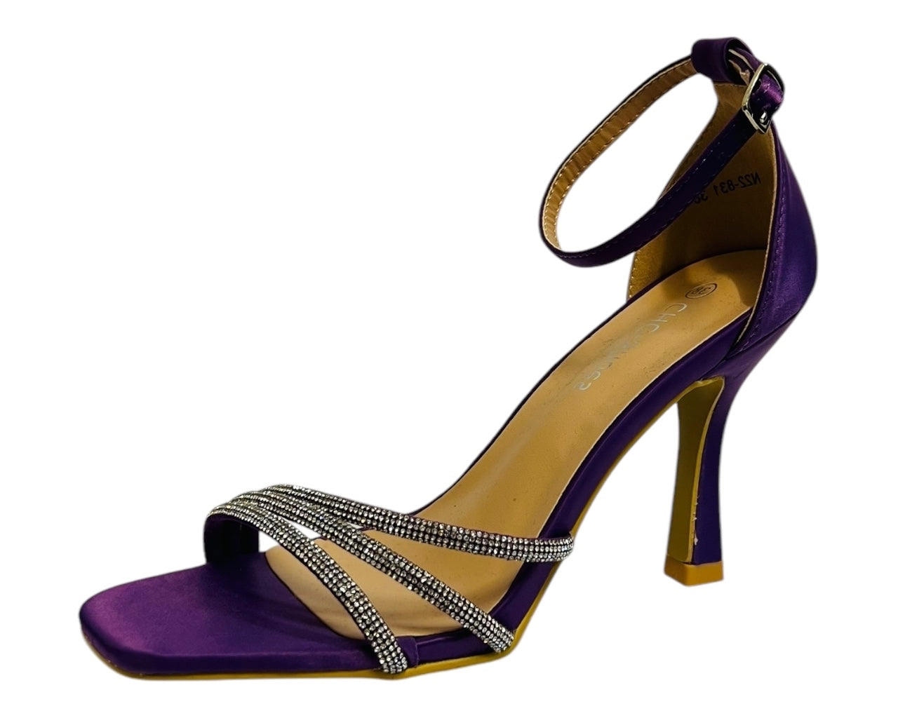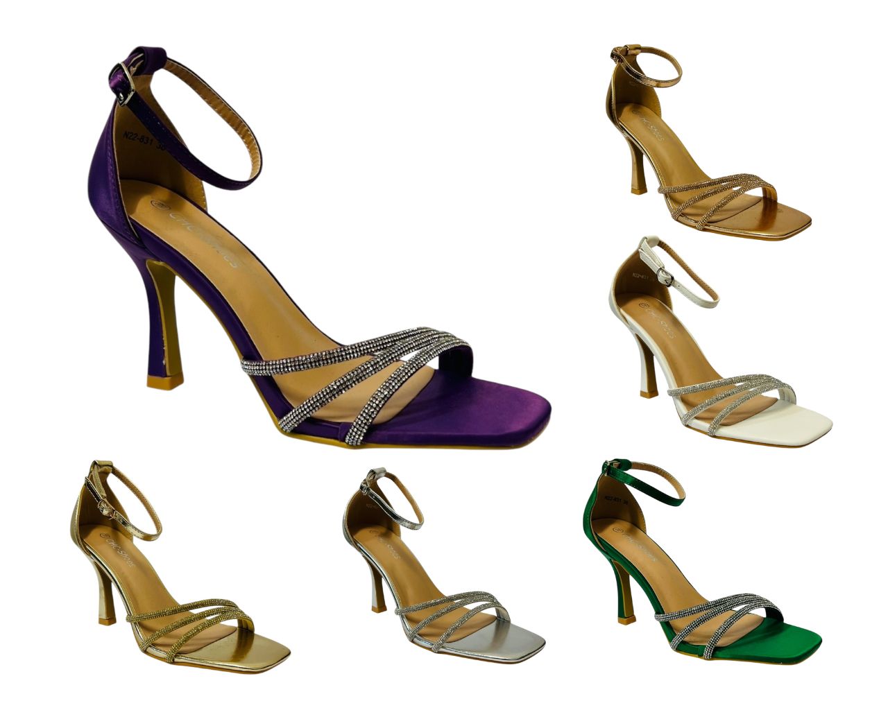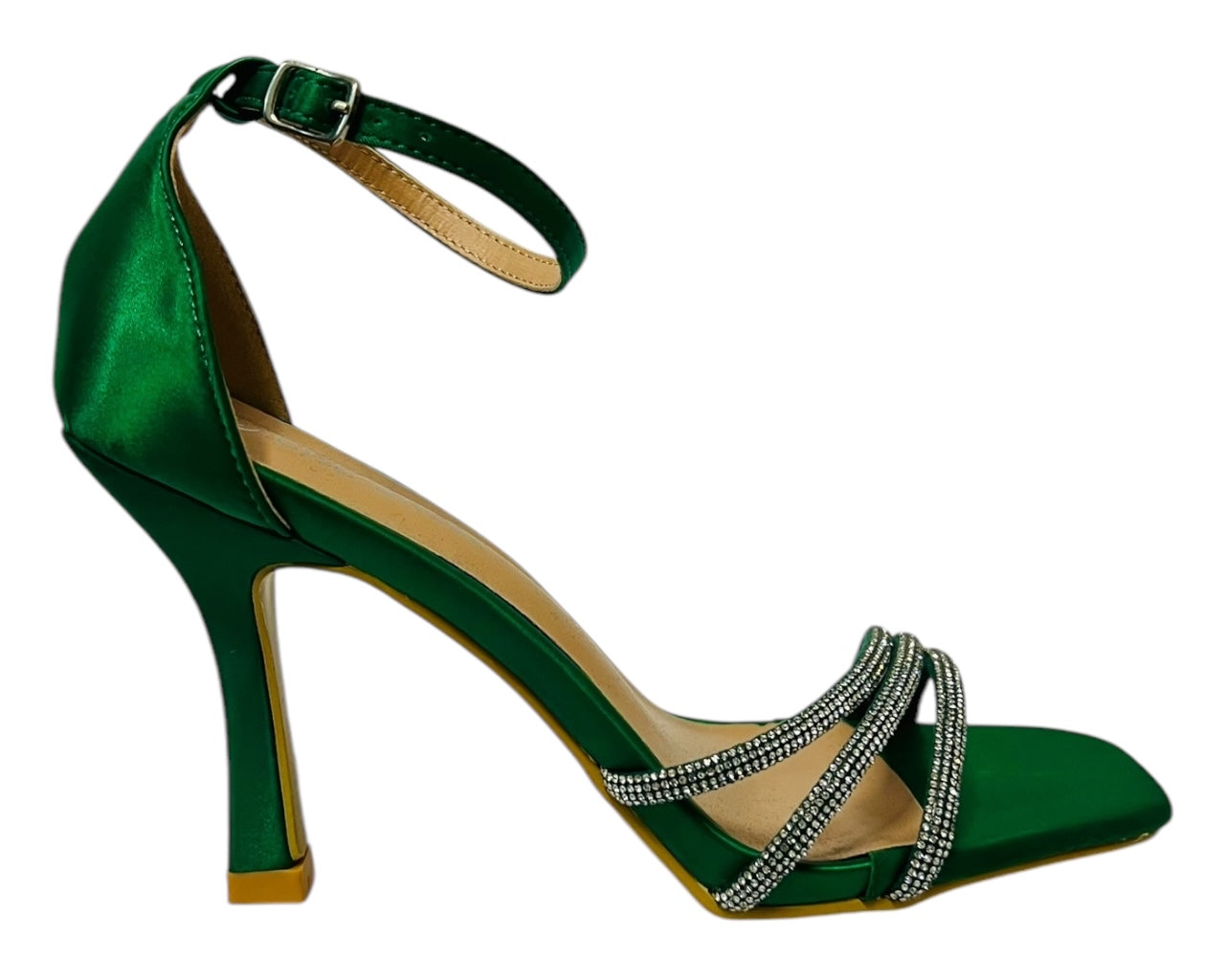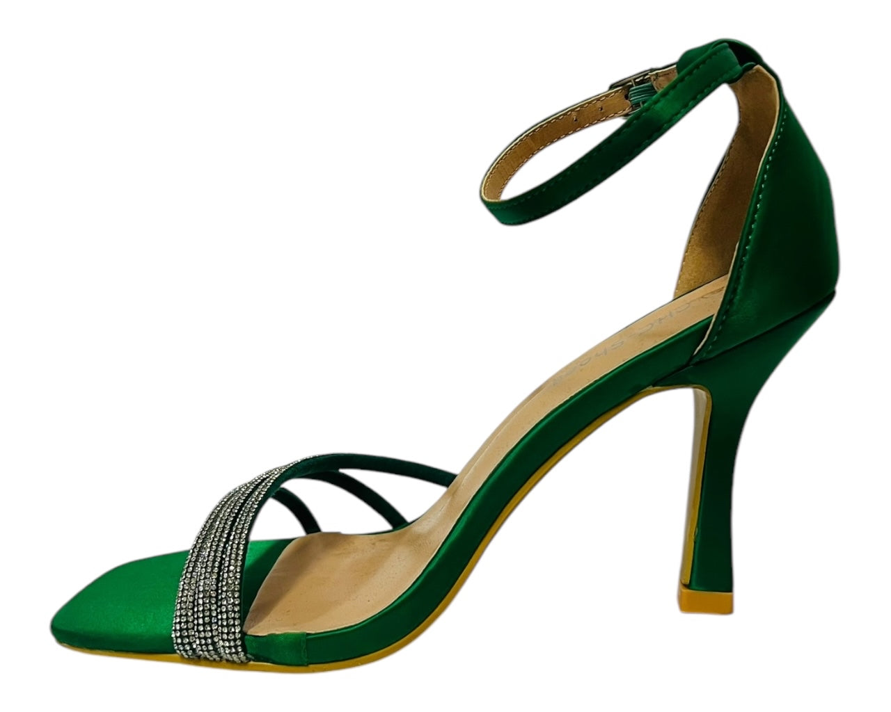 Step into elegance with these Women Rhinestone Décor Spool Heel Satin Ankle Strap Sandals. Crafted from luxurious satin, these sandals are designed to add a touch of glamour to any outfit. The sandals feature dazzling rhinestone embellishments along the straps, creating a sparkling effect that catches the light with every movement.