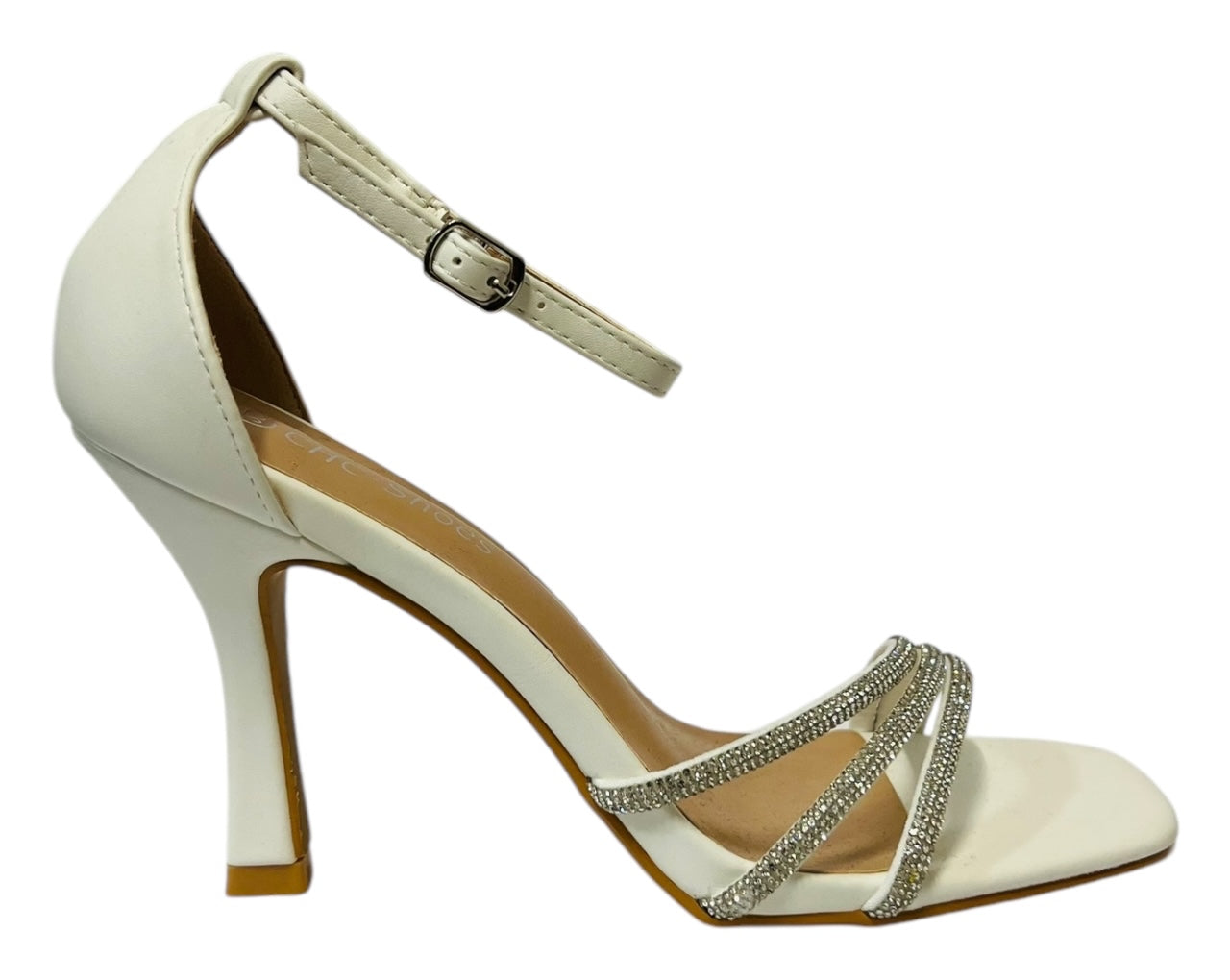 Women's Rhinestone Decor Spool Heels With 3 Strass Straps Heel Shoes