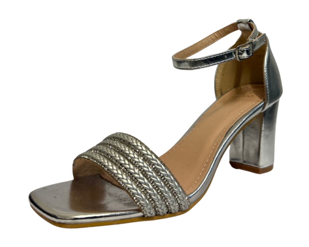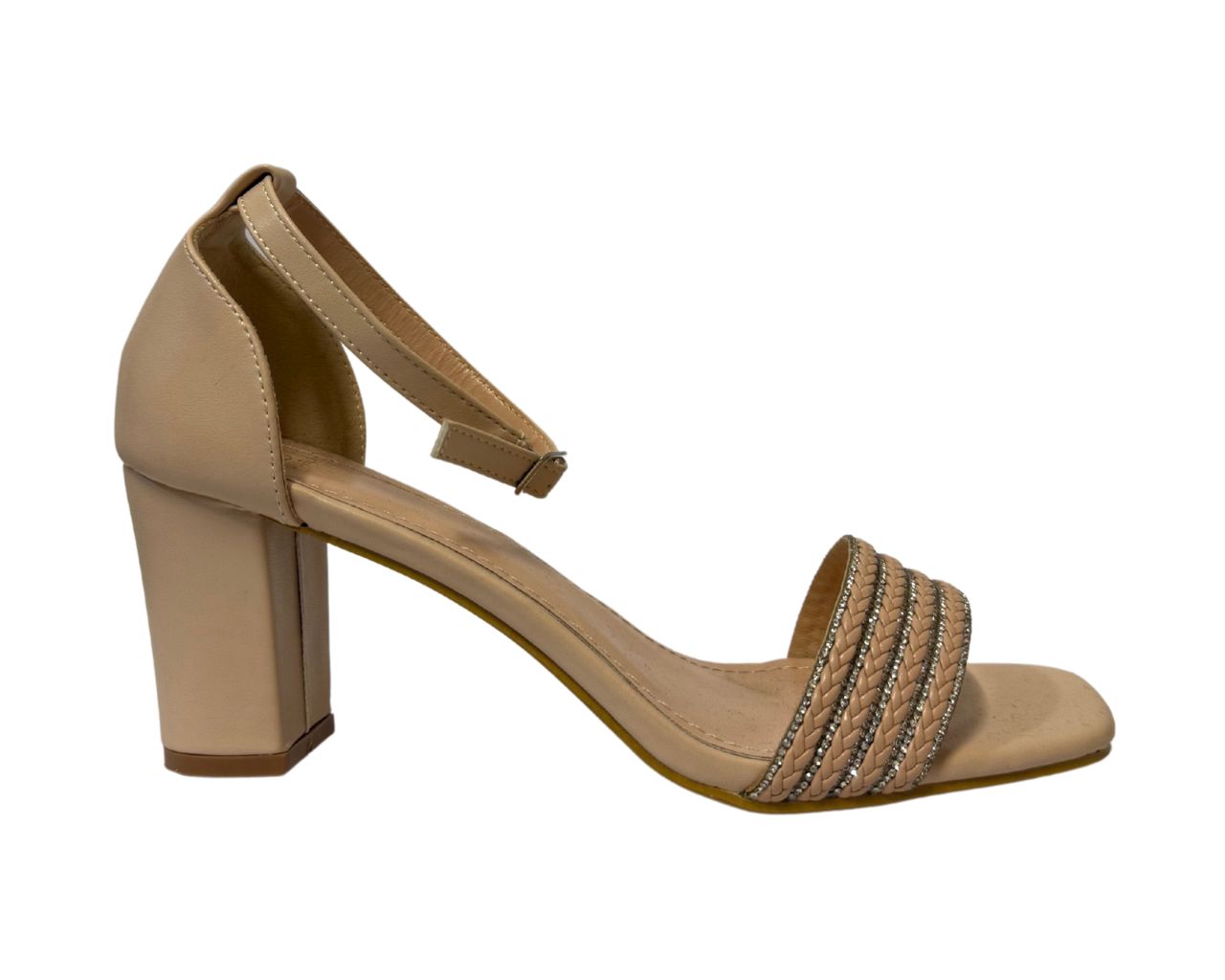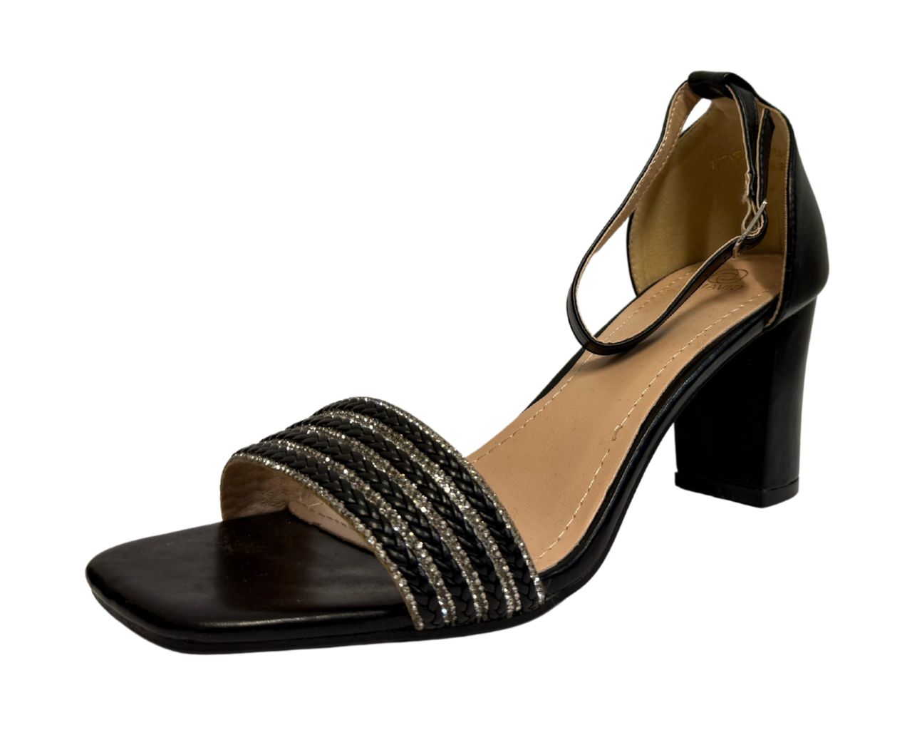 Women's B1639-131 Rhinestone Decor Block Heel Ankle Strap Shoes