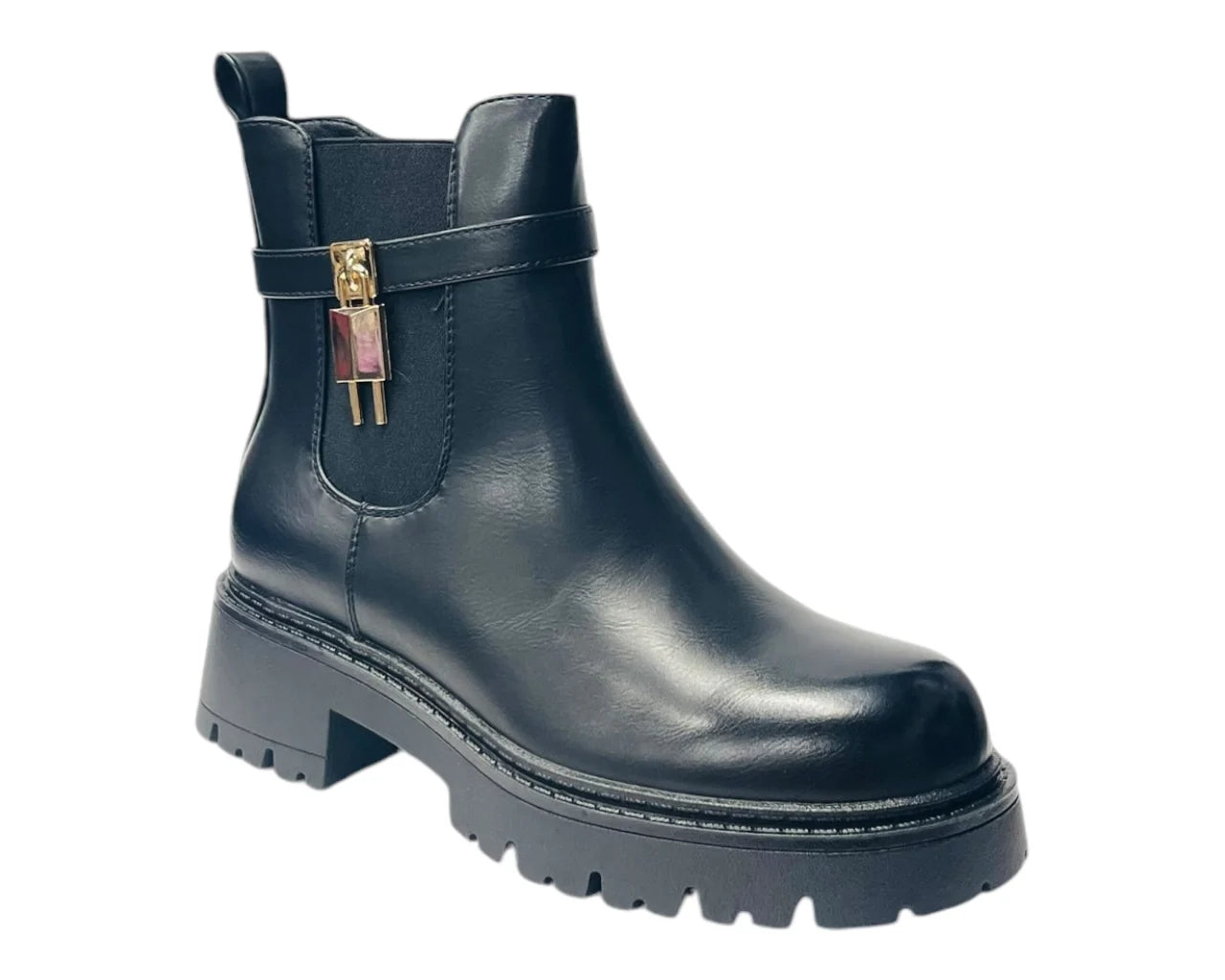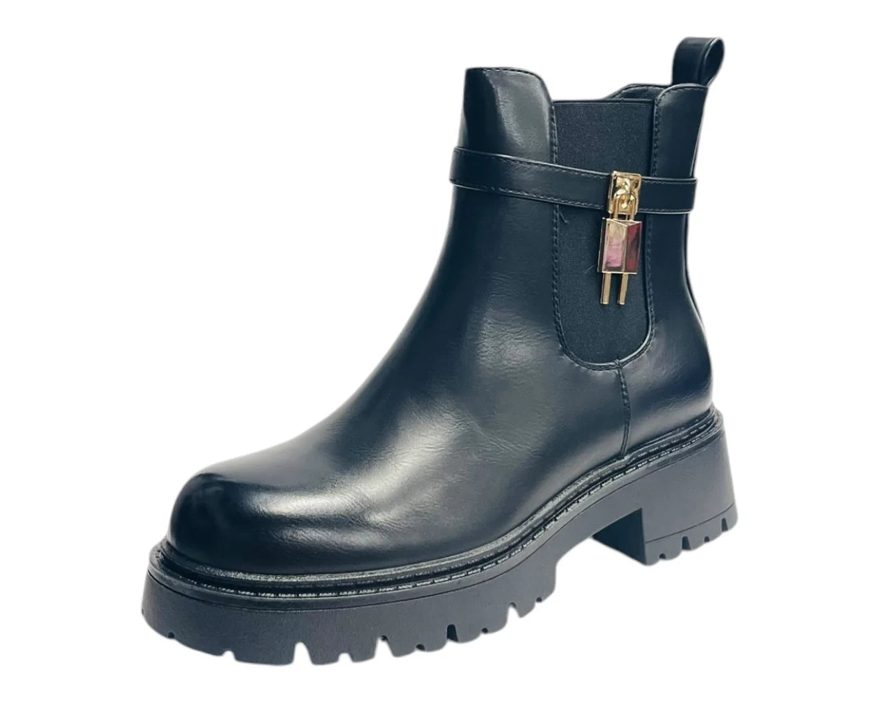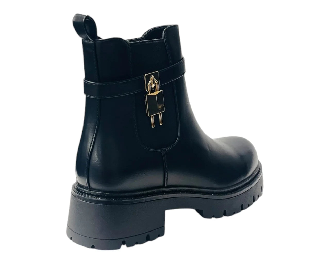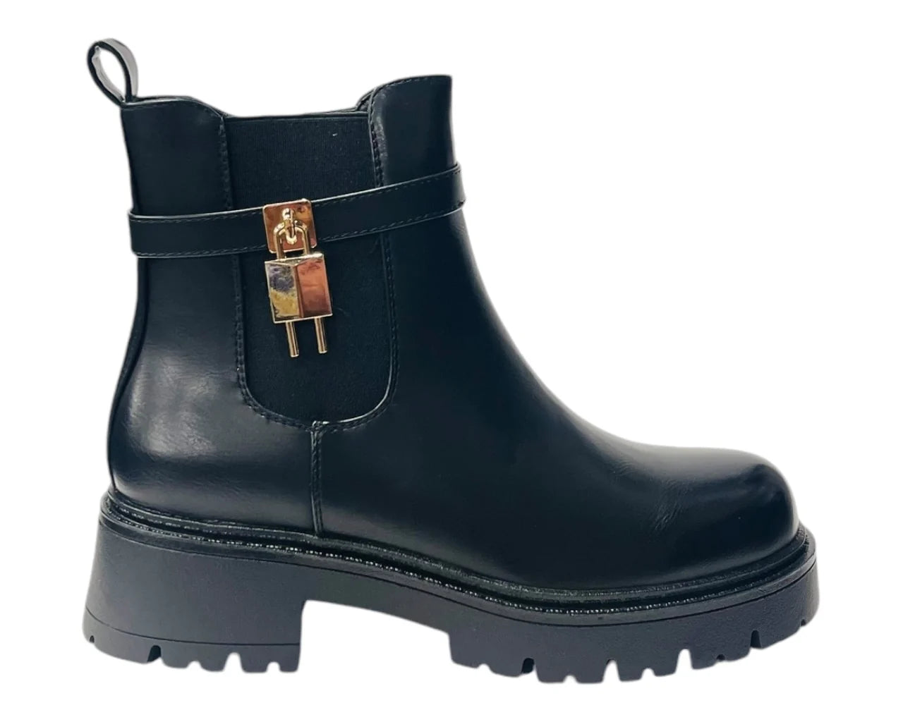 Women's Chunky Sole Padlock Chelsea Ankle Boots with Gold Buckle