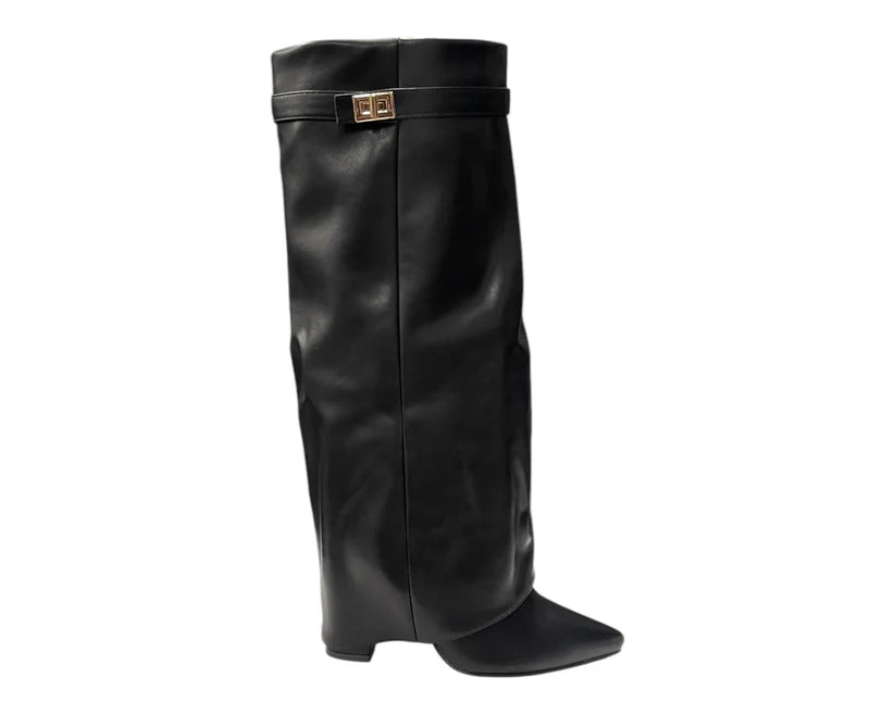 These knee-high fold-over boots combine classic style with modern comfort. Featuring a sturdy block heel, they provide reliable support for extended wear. The fold-over design adds versatility, allowing you to adjust the look to suit different outfits and occasions. Crafted for both fashion and function, these boots are an excellent choice for elevating your wardrobe with timeless appeal.
